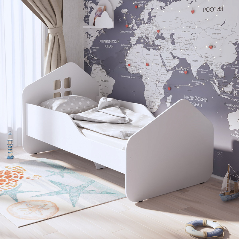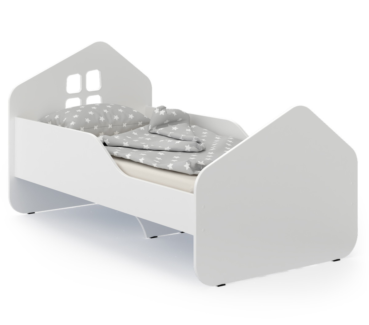 Фасады изголовья и изножья кровати выполнены в форме домика.