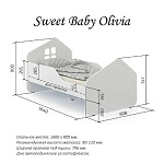 Детская подростковая кровать с бортиками Sweet Baby Olivia рассчитана на ребенка в возрасте 3-7 лет. Встроенные бортики-ограничители позволяют родителям не переживать, что малыш, еще не привыкший спать в просторной кровати, сможет упасть ночью. Высота бортика от дна кровати в высокой части 20,5 см, в низкой части - 5,5 см.