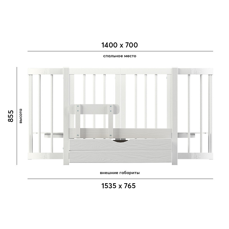 Кроватка имеет уникальное спальное место до 140 см!
