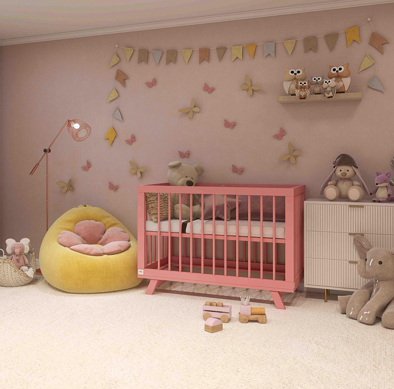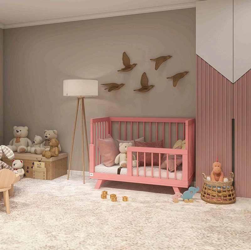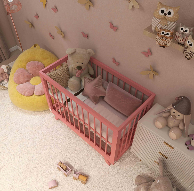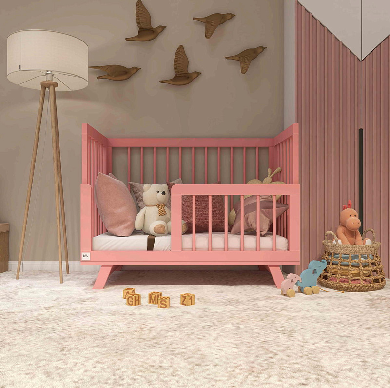 Реечные стенки обеспечивают свободный воздухообмен и визуальный контакт малыша с родителями.