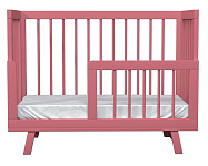 Удобство использования обеспечивают четыре комфортных положения ложа по высоте, продольный маятник в качестве дополнительной опции и сменный защитный бортик, который позволит подросшему малышу самостоятельно залезать в кроватку.