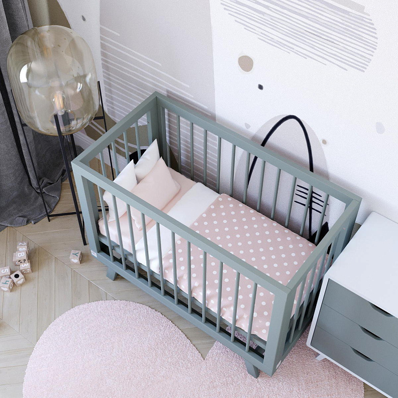 За безопасность ребенка отвечают натуральные материалы, более массивный и потому устойчивый каркас кроватки и стенки из надежных круглых реек, идеальных для захвата детскими ручками.