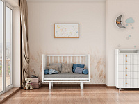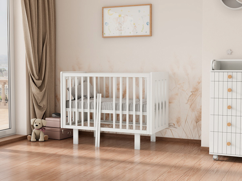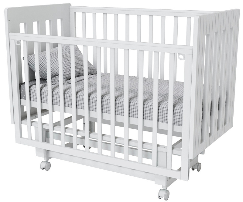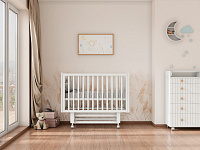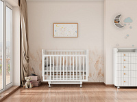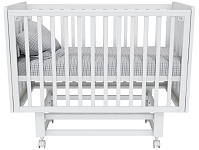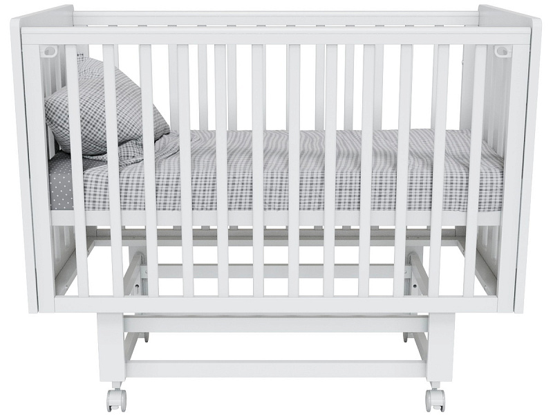 Продольный маятник на колесах позволит превратить кроватку в укачивающий центр, который позволит успокоить ребенка, настроить на сон, сделать сон спокойнее и крепче. Колеса позволят легко передвигать кроватку по квартире, комнате.