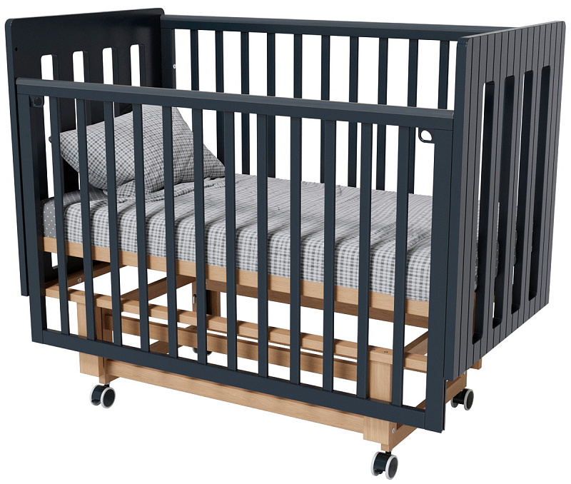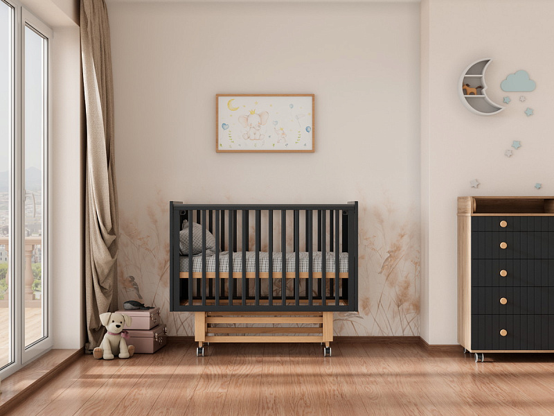 Продольный маятник на колесах позволит превратить кроватку в укачивающий центр, который позволит успокоить ребенка, настроить на сон, сделать сон спокойнее и крепче. Колеса позволят легко передвигать кроватку по квартире, комнате.