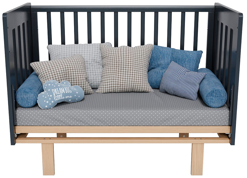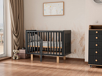 Кровать Lunna CHARM имеет реечное основание с возможностью регулировки в 4 положениях по высоте. Передний бортик легко регулируется по высоте или полностью снимается (автостенка), что позволит использовать кроватку, как приставную или диванчик. Для защиты детских зубов на бортиках предусмотрены ПВХ накладки.
