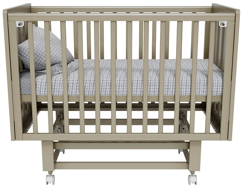 Продольный маятник на колесах позволит превратить кроватку в укачивающий центр, который позволит успокоить ребенка, настроить на сон, сделать сон спокойнее и крепче. Колеса позволят легко передвигать кроватку по квартире, комнате.
