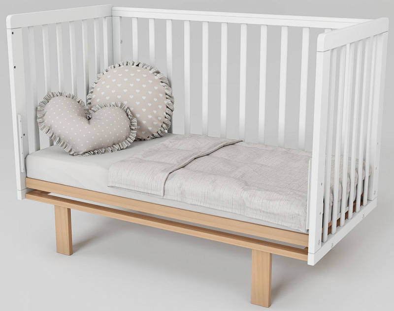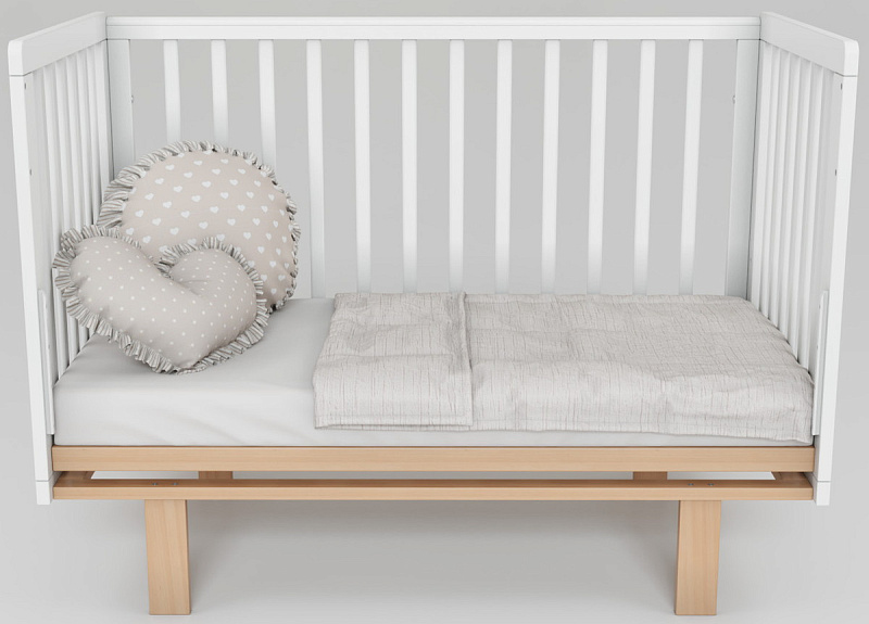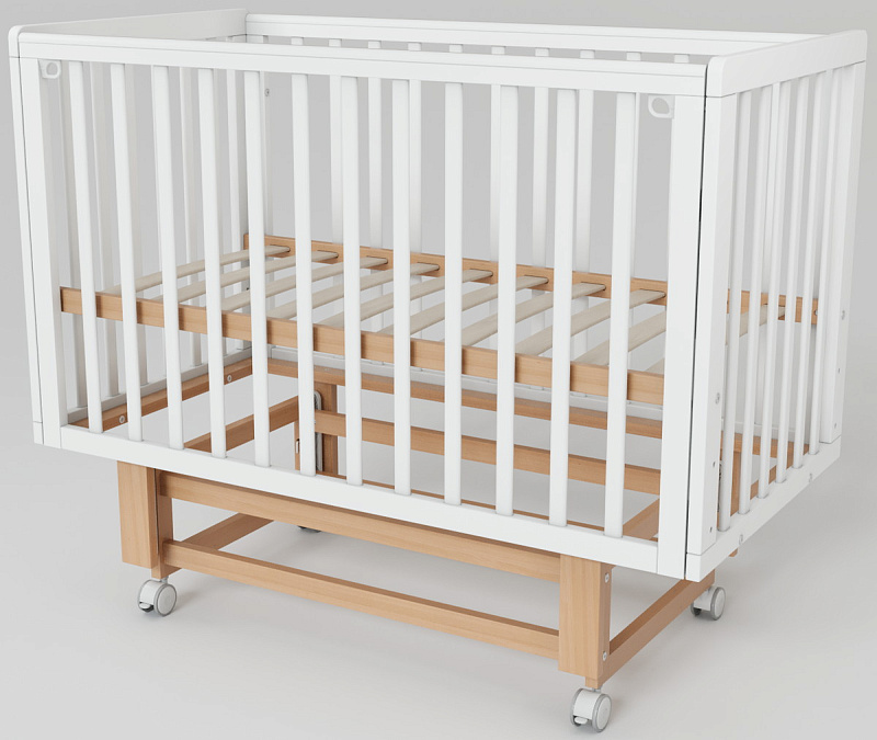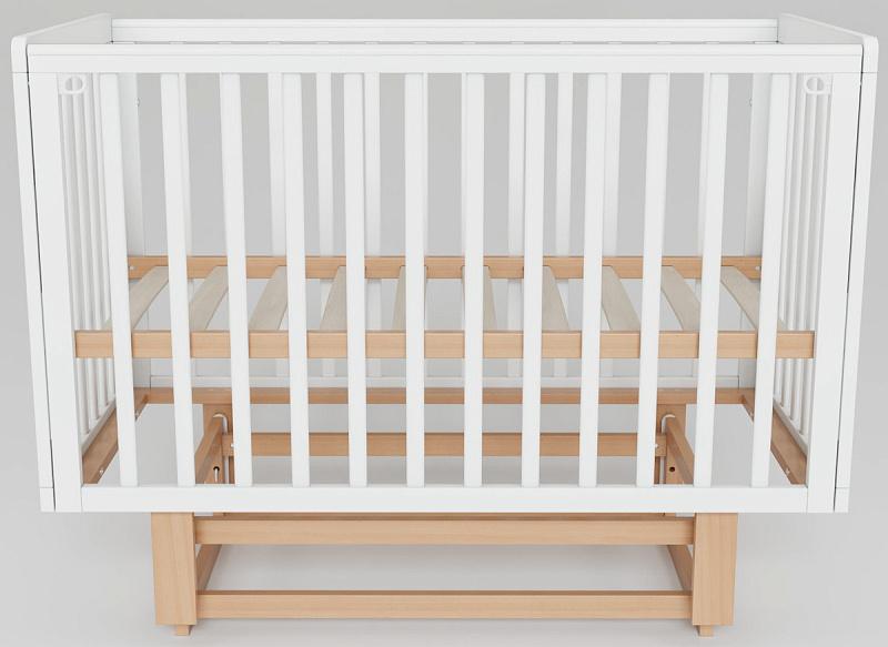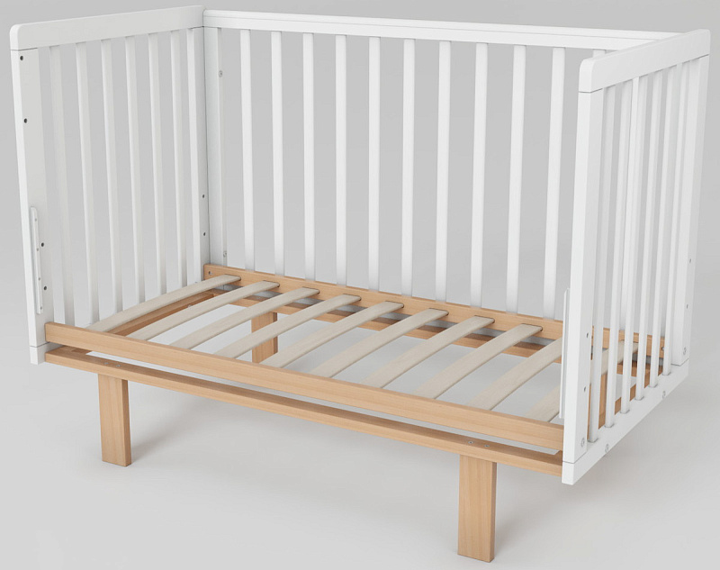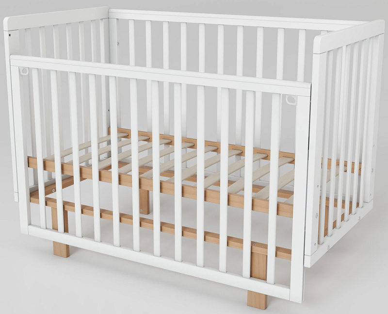 Скругленные углы и накладки ПВХ, защищающие малыша от травм десен и зубов, делают кроватку максимально безопасной. Две съемные ламели позволяют подросшему ребенку самостоятельно залезать и вылезать из кроватки, способствуя развитию его самостоятельности.