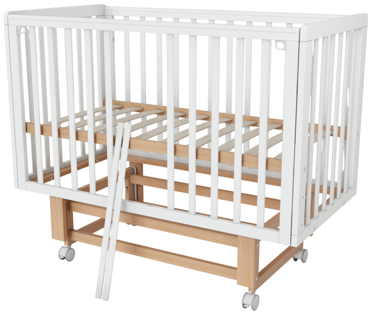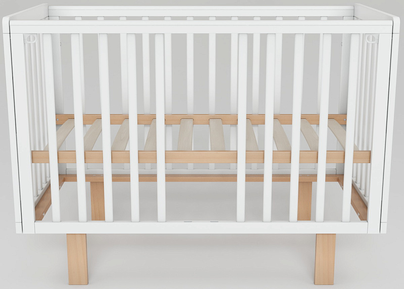 Скругленные углы и накладки ПВХ, защищающие малыша от травм десен и зубов, делают кроватку максимально безопасной. Две съемные ламели позволяют подросшему ребенку самостоятельно залезать и вылезать из кроватки, способствуя развитию его самостоятельности.