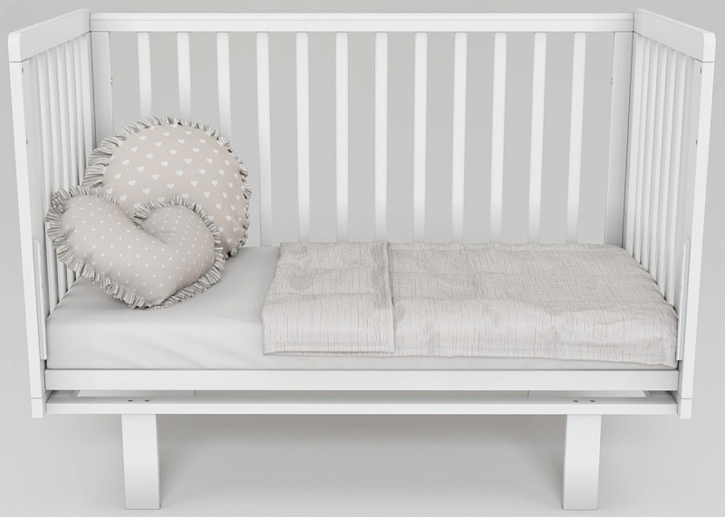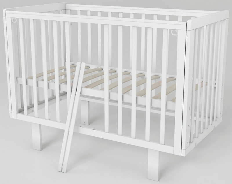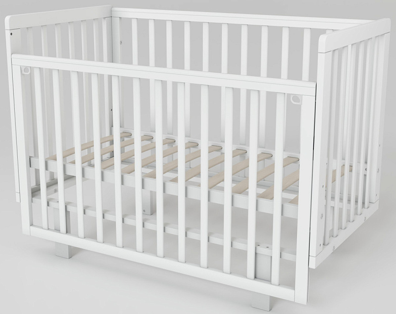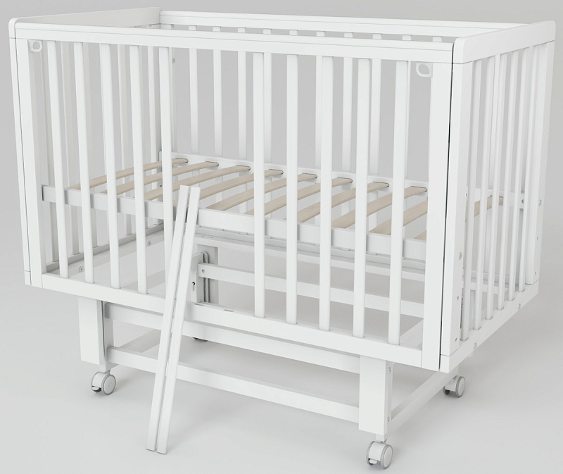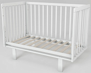 Скругленные углы и накладки ПВХ, защищающие малыша от травм десен и зубов, делают кроватку максимально безопасной. Две съемные ламели позволяют подросшему ребенку самостоятельно залезать и вылезать из кроватки, способствуя развитию его самостоятельности.