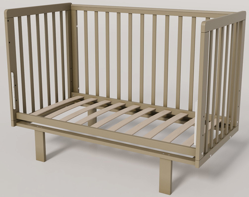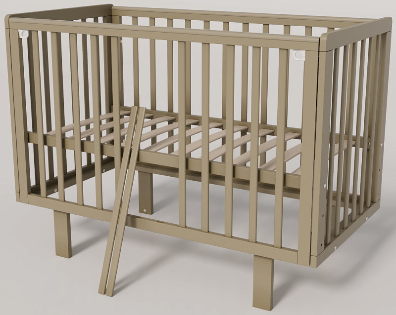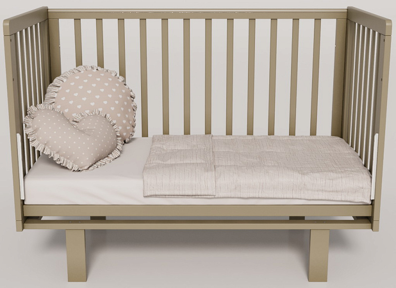 Скругленные углы и накладки ПВХ, защищающие малыша от травм десен и зубов, делают кроватку максимально безопасной. Две съемные ламели позволяют подросшему ребенку самостоятельно залезать и вылезать из кроватки, способствуя развитию его самостоятельности.