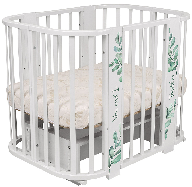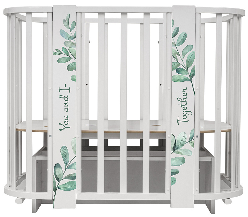 Кроватка-трансформер Indigo Green Line 5 в 1 листочки