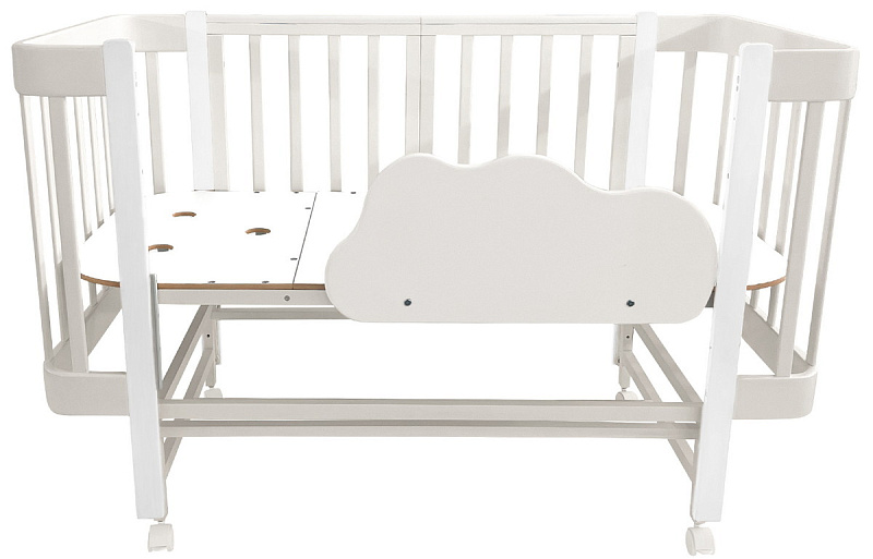 Трансформация 4-в-1: колыбель 90×70 см, большая кровать 140×70 см, приставная кровать 90х70 и диванчик 140×70.