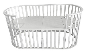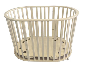 - Конструкция позволяет собрать/разобрать восемь необходимых предметов детской мебели: спальное место - круглое, овальное; небольшой диван; манеж; стол для пеленания, также столик для кушанья, стулья и большой диван для подросшего ребенка.