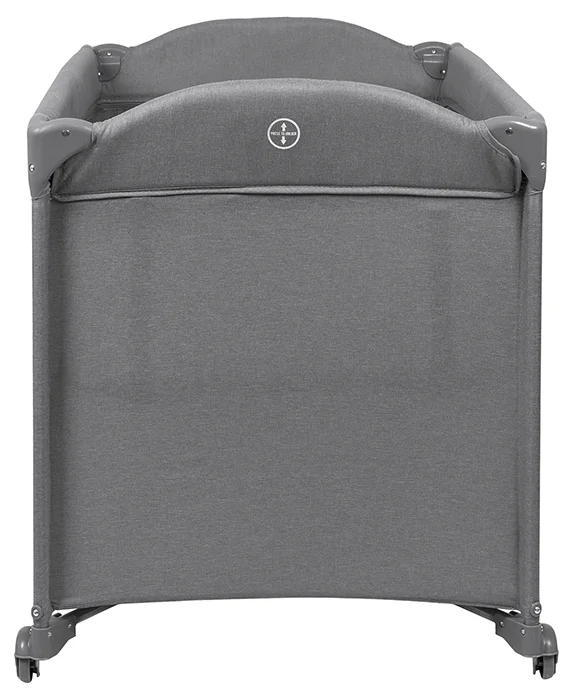 Прочный каркас и два резиновых колеса позволяют легко перемещать кроватку по квартире. Благодаря боковому входу вы можете легко укладывать и забирать малыша.