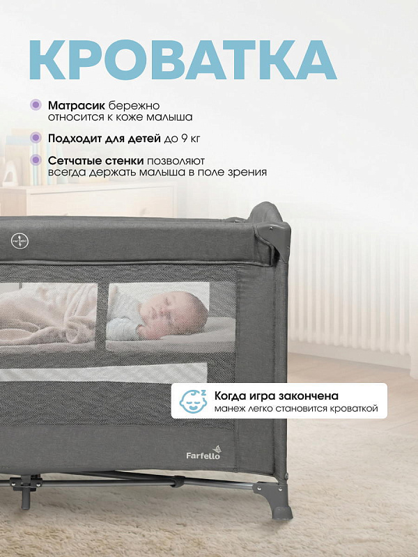Кровать-манеж Farfello Dolly серый шелкНет оценокХарактеристики