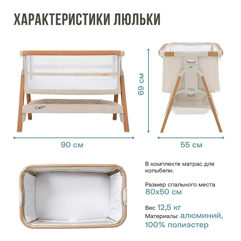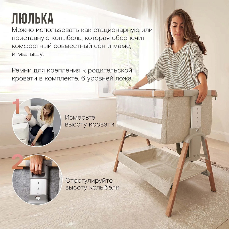 В режиме люльки CoZee XL представляет собой лёгкое и портативное решение, позволяющее вам держать ребёнка рядом в течение дня. Люлька идеально подходит для сна в разных частях дома: её можно плавно покачивать или фиксировать в неподвижном положении в зависимости от настроения малыша. Для этого нужно снять нижние ножки кроватки и установить отдельный комплект аксессуаров, включающий опорные ножки и поручни для качания. (Комплект аксессуаров для люльки продаётся отдельно).Колыбель: приставная или стационарная (аксессуары приобретаются отдельно)