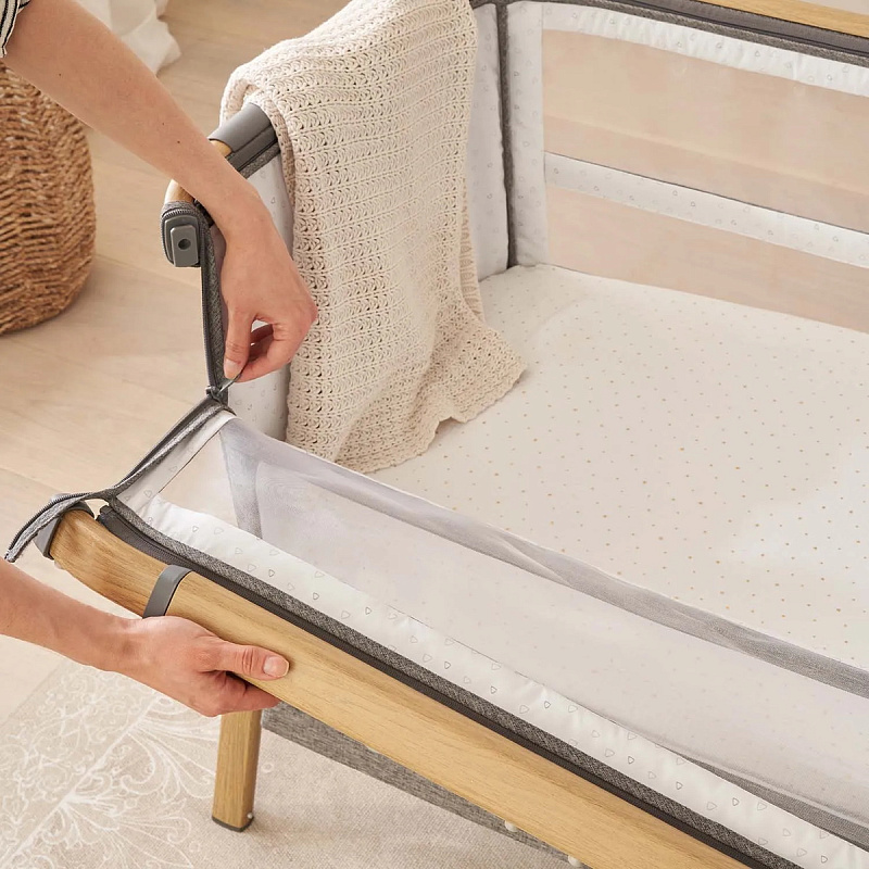 При использовании в качестве прикроватной кроватки CoZee XL работает так же, как и оригинальная модель CoZee, обеспечивая безопасное и комфортное спальное место с рождения до примерно 6 месяцев. Её можно использовать как отдельно стоящую кроватку или для совместного сна, опустив откидную боковину и надёжно прикрепив её к родительской кровати. Продуманный механизм складывания делает кроватку удобной для транспортировки и хранения, а дышащие сетчатые боковины обеспечивают циркуляцию воздуха для безопасного сна.Детская кроватка 120х60 (Аксессуары для кровати (приобретаются отдельно): матрас 120х60 см, наматрасник 120х60 см, постельное белье 120х60 см)