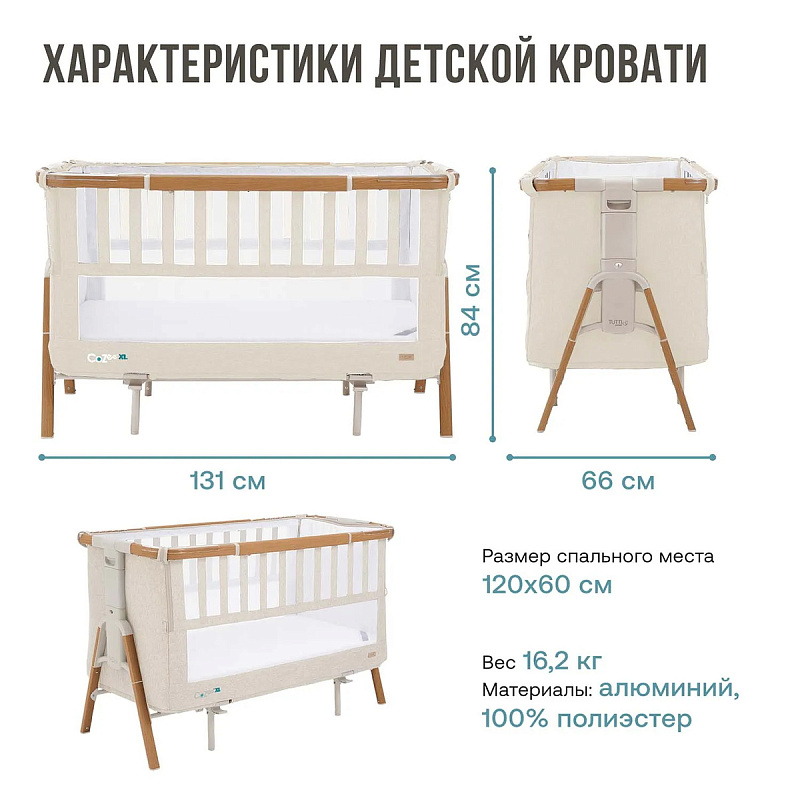 Кровать-трансформер приставная Tutti Bambini CoZee XL 120х60 см Scandinavian Walnut/EcruНет оценокХарактеристики