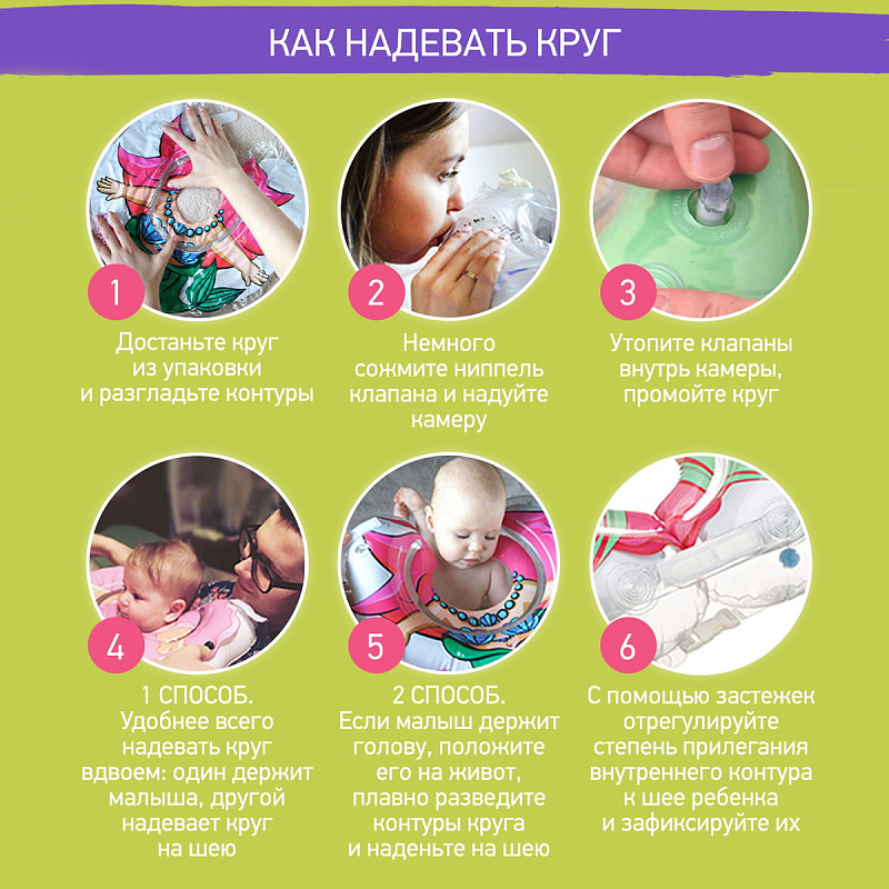 - две надежные застежки для быстрой и простой фиксации круга на шее малыша, места крепления застежек усилены