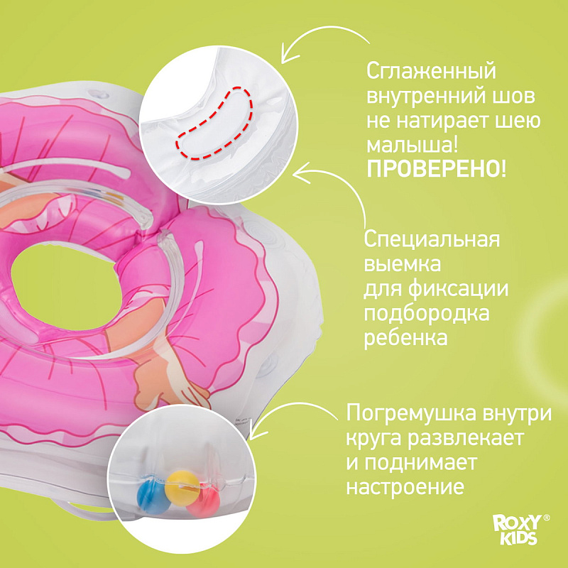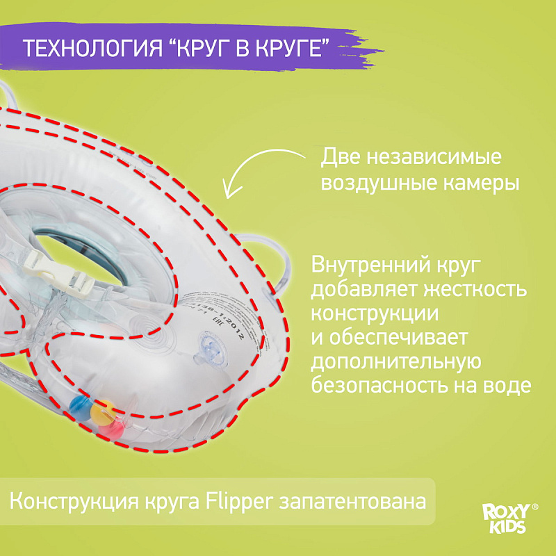 Круги изготавливаются с учетом особенностей анатомии новорожденных и детей младшего возраста. Все модели кругов на шею Flipper с внутренней стороны имеют сглаженный шов, который не давит на шею малыша, в то же время плотно прилегая к ней, и не травмирует шейные позвонки.