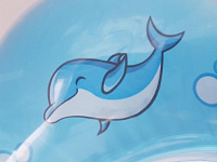- Надевается на шею маленького купальщика и надежно фиксируется под подбородком с помощью специального фиксатора, предупреждающего его случайное соскальзывание.