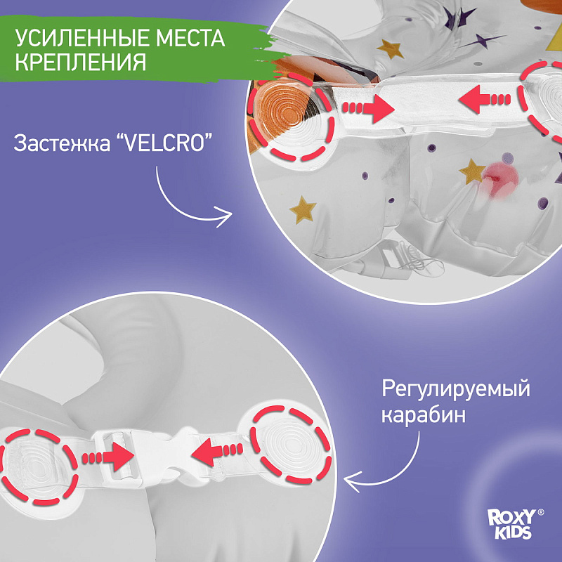 - Надежная фиксация обеспечивается двумя удобными регулируемыми липучками и карабином.