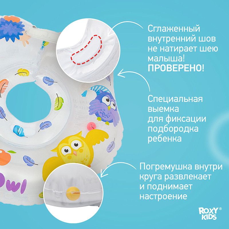 - гладкий внутренний шов с круга не сдавливает и не царапает шею малыша, плотно прилегает к ней, не допуская травмирования хрупких шейных позвонков новорожденного