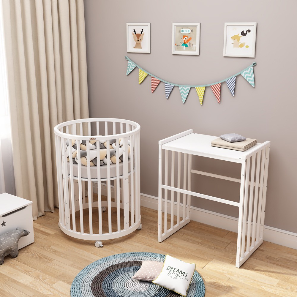Круглая детская кроватка Dreams Store 8 в 1 Dreams Стандарт с маятником 1000401 Белая + 1000901 Белый