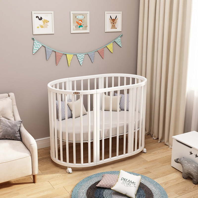 Круглая детская кроватка Dreams Store 8 в 1 Dreams Стандарт с маятником 1000401 Белая + 1000901 Белый1 оценкаХарактеристики