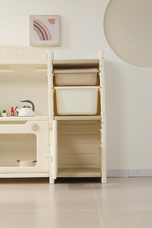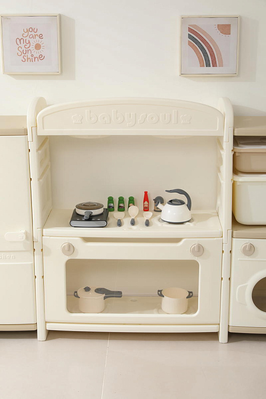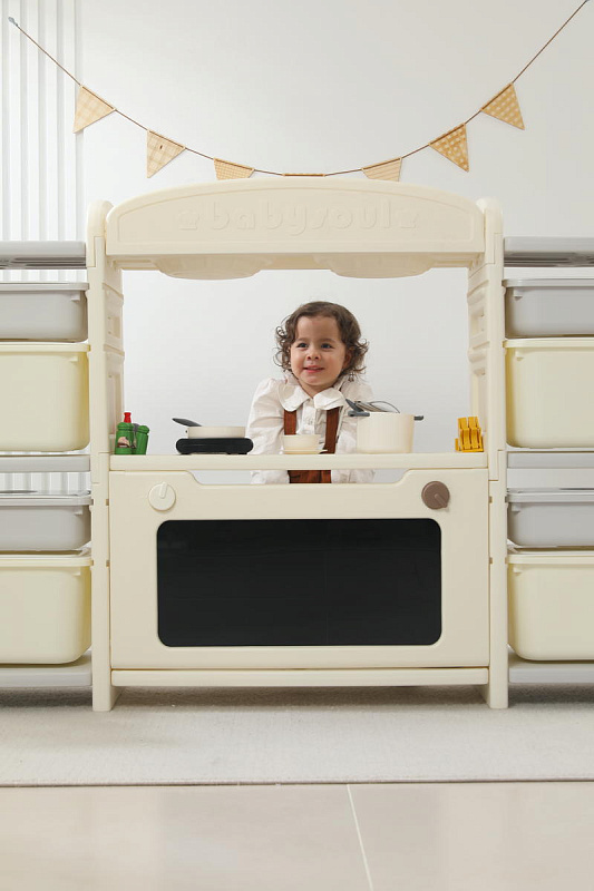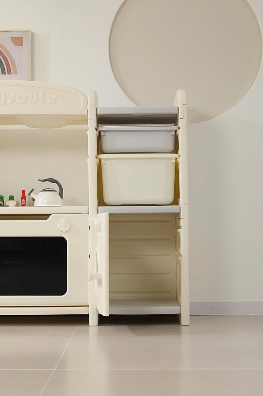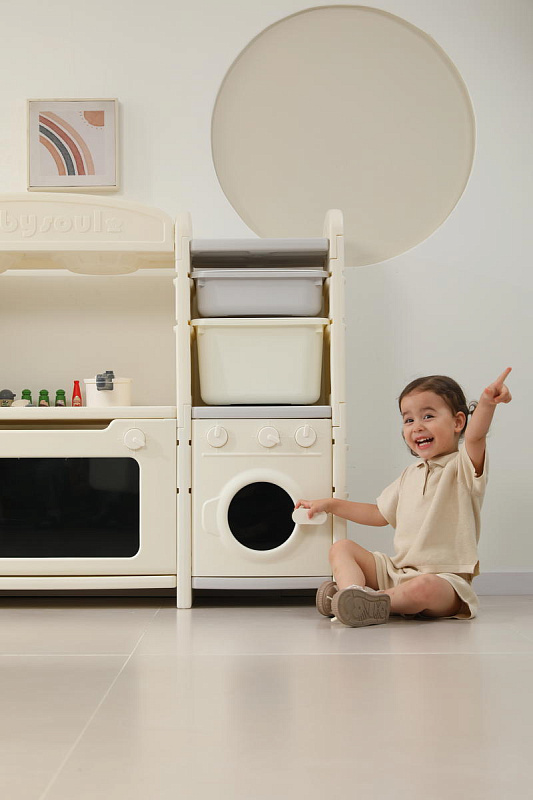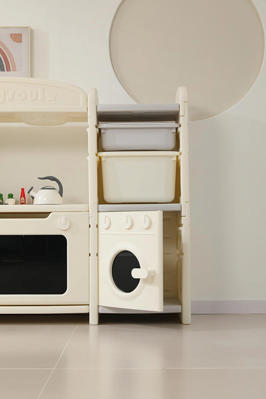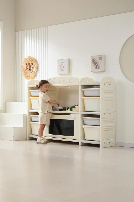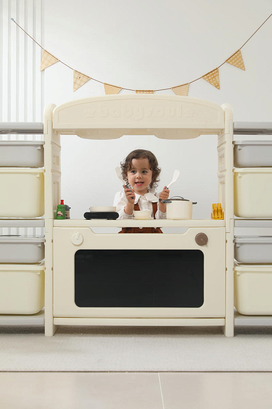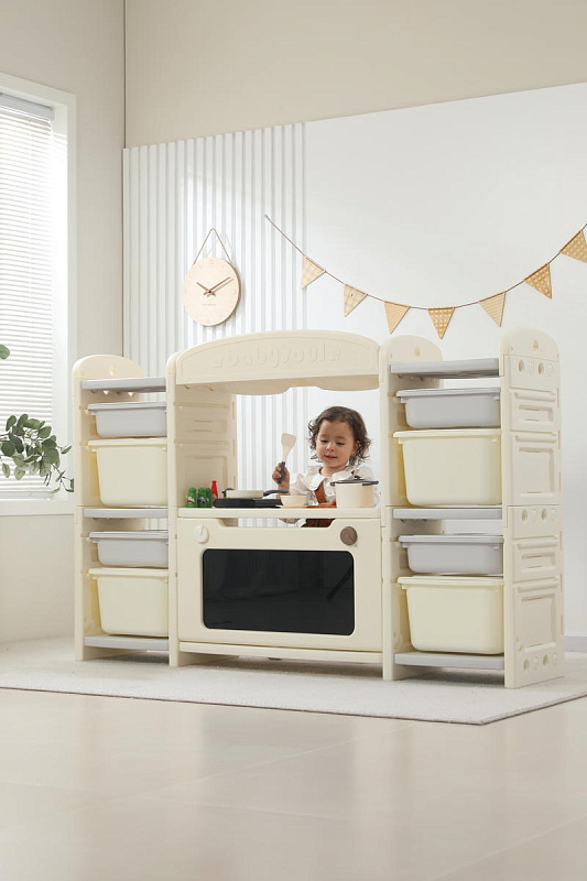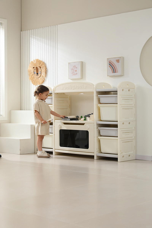 Развивающая игрушка кухня по системе Монтессори способствует развитию мелкой моторики, логического мышления и креативности. Ребенок сможет изучать основы приготовления пищи, комбинировать различные ингредиенты и даже разрабатывать свои собственные рецепты! В процессе игры малыш научится различать продукты, кухонные принадлежности, столовые приборы и поймет, как работает плита и духовка. А вместительные ящики с крышками можно использовать для хранения посуды и продуктов из набора.