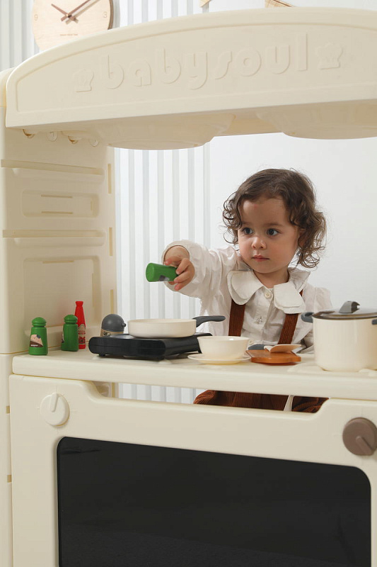 Игрушечная кухня 1+ изготовлена из пищевого пластика, который прошел строгие тесты на безопасность. Мы заботимся о здоровье и безопасности маленьких пользователей, поэтому каждая деталь продумана до мелочей – сглаженные углы без зазубрин, надежная конструкция. 48 элементов кухни легко очищаются от загрязнений, что делает их идеальными для игр. Просто протрите их влажной салфеткой — и они снова готовы к игре!