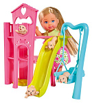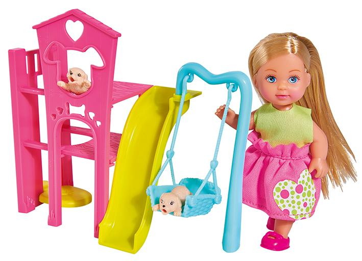 В наборекукла Еви 12 см, 2 щенка, игровая площадка для питомцев с горкой, качелями и лифтом