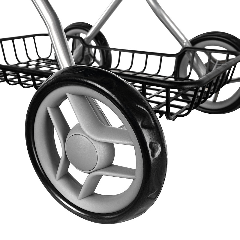 Прогулочная игровая коляска для кукол выглядит как маленькая копия настоящей современной коляски для детей. Чехол выполнен из качественного текстиля, рама игрушки выполнена из металлической трубы, покрытой полимерным красителем, колеса изготавливаются из пластика.