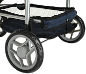 Мягкая съёмная корзина для аксессуаров внизу коляски. Размер корзины - 29х26х7 см.