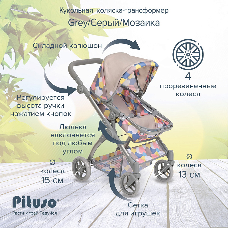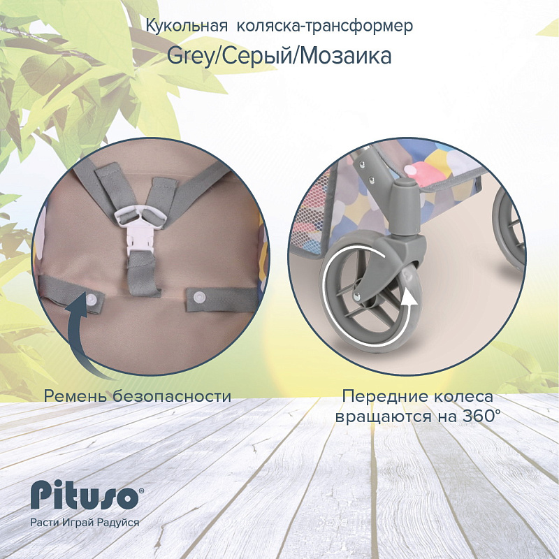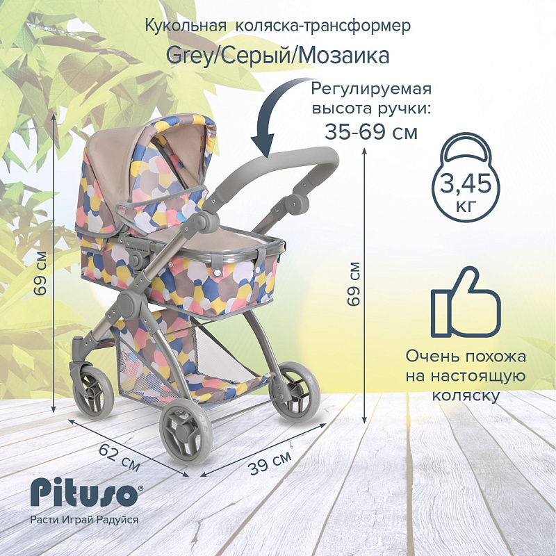Кукольная коляска-трансформер Pituso Мозаика Grey/Серый