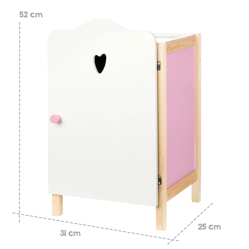 Кукольный шкаф Roba Scarlett имеет красивую белую лакированную дверцу с сердечком. Гардеробная включает штангу для кукольной одежды и полку для аксессуаров для кукол.