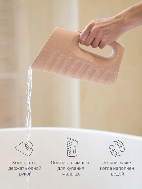 Кувшин для первых водных процедур новорождённого. Объём кувшина edda — 1 литр, он оптимален для купания младенца. Лёгкий кувшин комфортно держать одной рукой, даже когда он наполнен. Гибкий и мягкий, кувшин остаётся бесшумным при падении. Он выполнен из гигиеничного EVA-материала, устойчивого к образованию плесени при высокой влажности. Гипоаллергенность, мягкость материала и обтекаемая форма без острых углов делают кувшин безопасным для новорождённых.