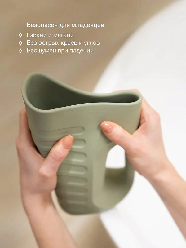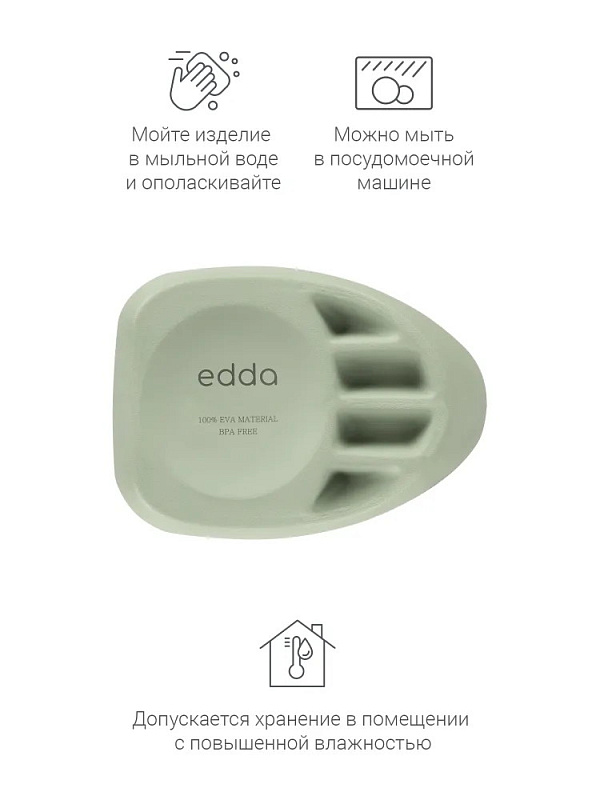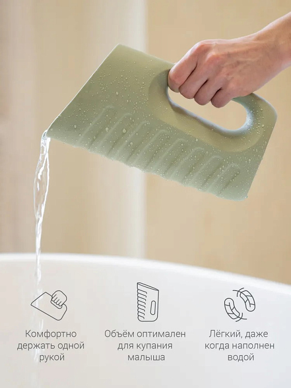 Кувшин для первых водных процедур новорождённого. Объём кувшина edda — 1 литр, он оптимален для купания младенца. Лёгкий кувшин комфортно держать одной рукой, даже когда он наполнен. Гибкий и мягкий, кувшин остаётся бесшумным при падении. Он выполнен из гигиеничного EVA-материала, устойчивого к образованию плесени при высокой влажности. Гипоаллергенность, мягкость материала и обтекаемая форма без острых углов делают кувшин безопасным для новорождённых.