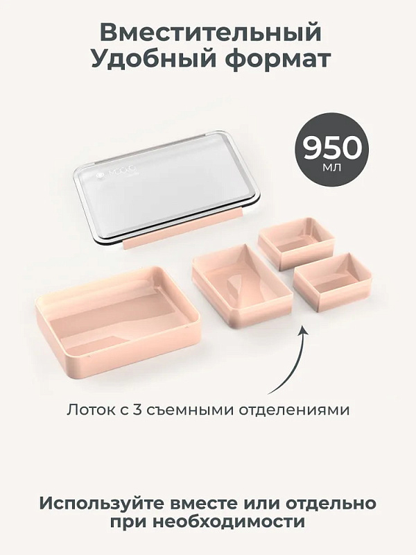 - Объем 950 мл идеально подходит для хранения полноценного обеда, позволяя вам взять с собой разнообразные блюда.
