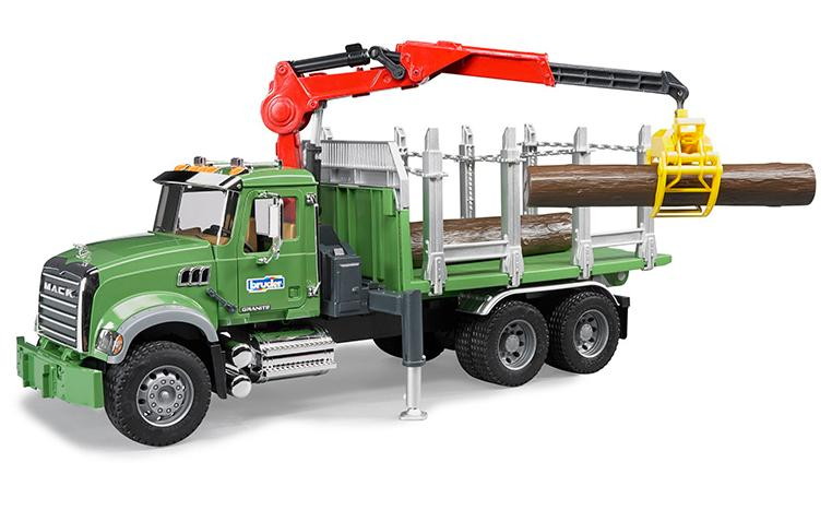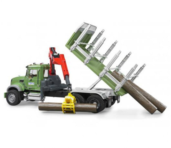 Лесовоз Bruder Mack с портативным краном и брёвнами