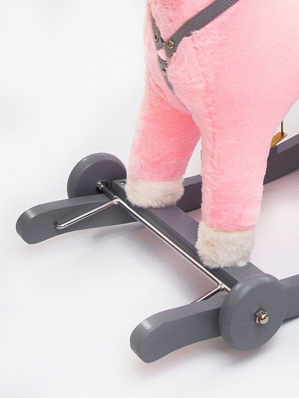 - Полозья качалки лошадки поддерживают безопасную амплитуду качания. Лошадка оснащена дополнительной функцией каталки- достаточно перекинуть колеса под деревянные полозья