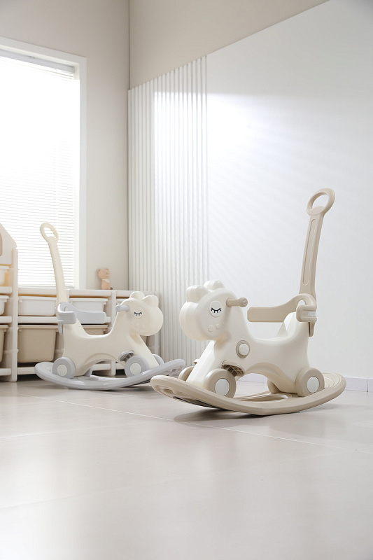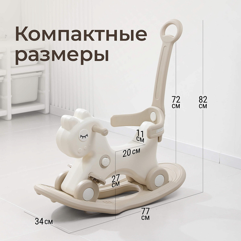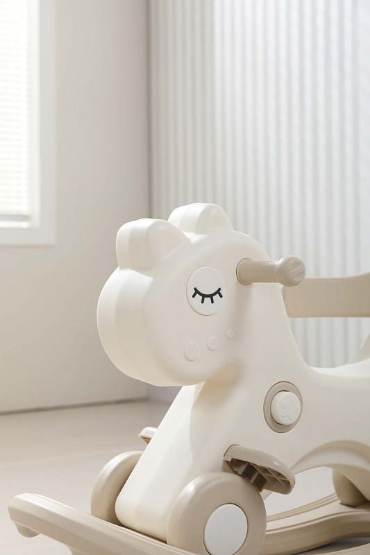 Широкое основание при качании обеспечивают максимальную безопасность для вашего малыша. Съемное основание позволяет легко превратить лошадку-качалку в лошадку-беговел. Фактически покупая одну игрушку, вы приобретаете две.
