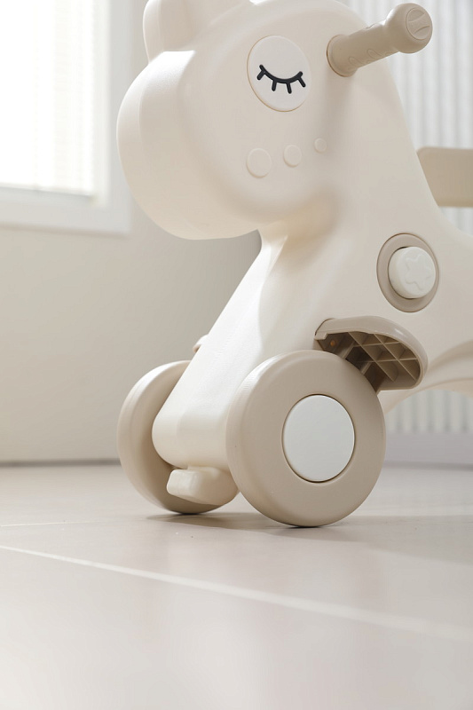 Как и другие детские товары марки Unix line, лошадка изготовлена из пищевого пластика 4-го класса — согласно классификации ГОСТ, гипоаллергенного и абсолютно безвредного даже для самых маленьких пользователей. Также этот материал не боится UV-лучей, и его можно использовать на улице.