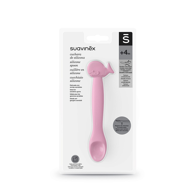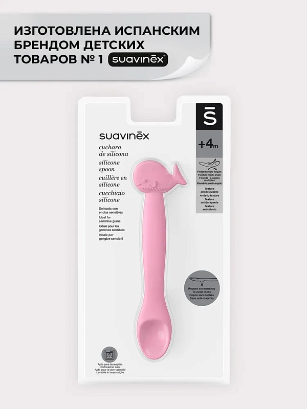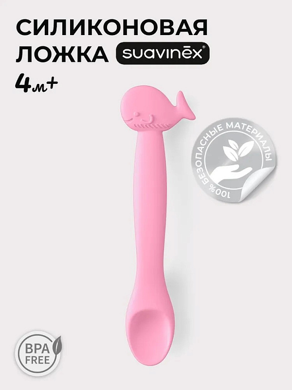 Ложка детская для кормления Suavinex силикон 401351 PINK WHALE S