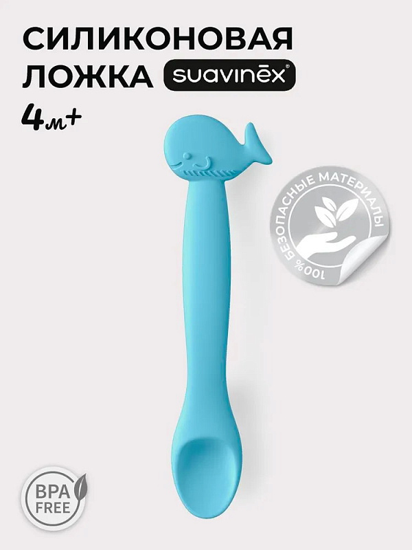 Ложка детская для кормления Suavinex силикон 401352 BLUE WHALE S
