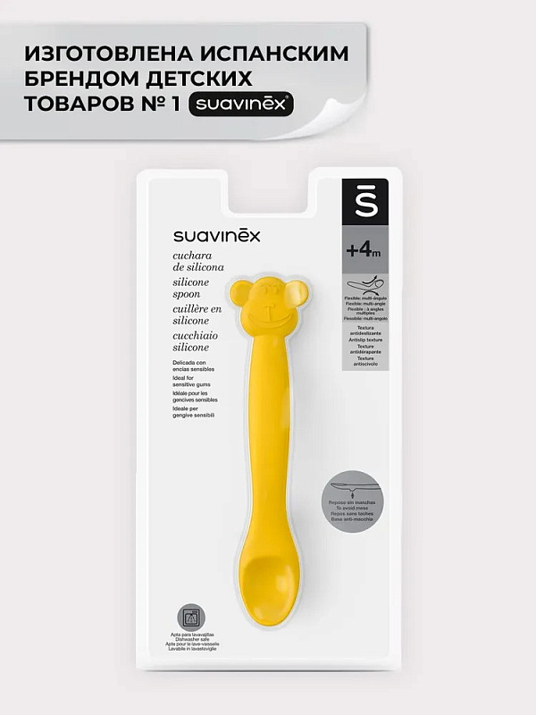 Ложка детская для кормления Suavinex силикон 401353 MONKEY YELLOW S