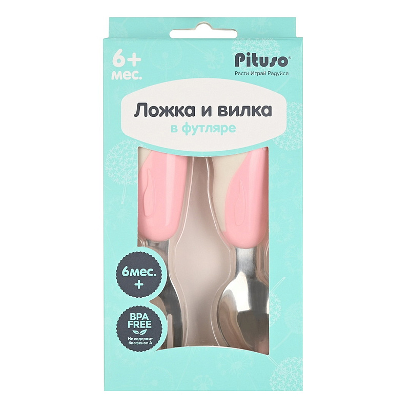 Ложка с вилкой Pituso в футляре YHY019 Pink (Розовый)