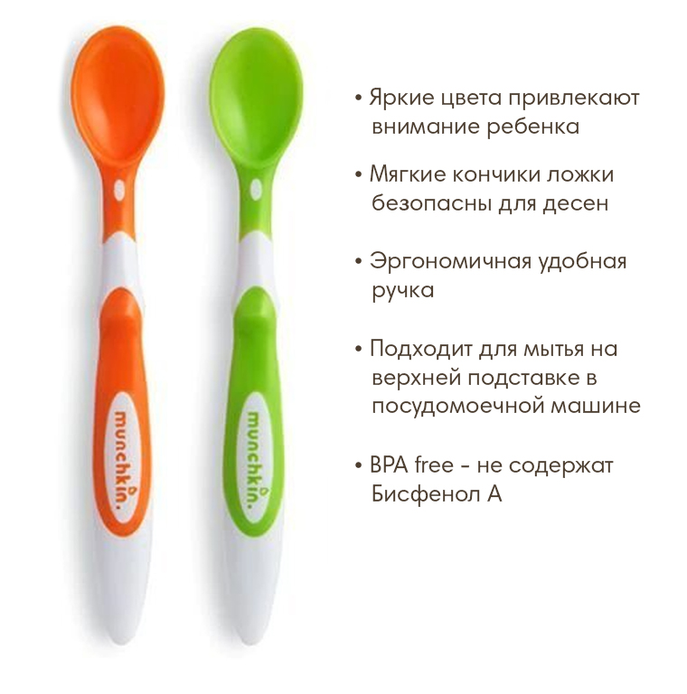 Мягкие кончики и округлые формы бережны к деснам, а маленький объем зачерпываемой пищи облегчит кормление для самого малыша. Ложки удобно держать и мама - специальные ручки имеют эргономичную форму и оптимальную длину.