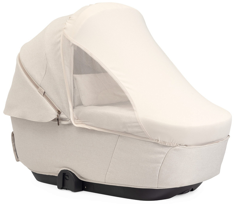 Капюшон люльки увеличивается в размере и имеет защиту от ультрафиолетовых лучей UV50+ и водоотталкивающее покрытие. Встроенный солнцезащитный козырек обеспечивает защиту ребенка от солнечных лучей и укусов комаров.