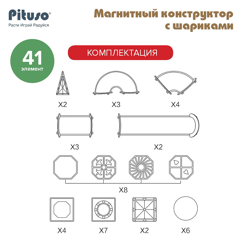 В наборе 41 элемент - конструктор-35 эл-тов, шарики - 6 шт.